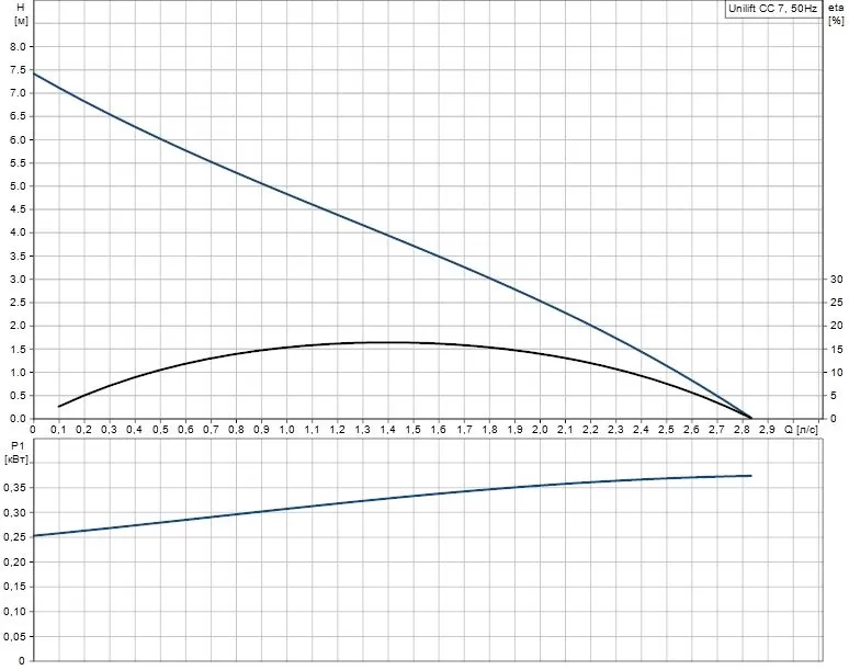 Одноступенчатый погружной дренажный насос Grundfos UNILIFT CC 7 M1 с вертикальным напорным патрубком. Служит для перекачивания чистой и загрязненной воды без волокнистых включений с твердыми частицами до 10 мм, отведения воды из затапливаемых помещений, стиральных машин, моечных агрегатов и душа. А так же откачивания воды из рек, прудов и различных емкостей.
