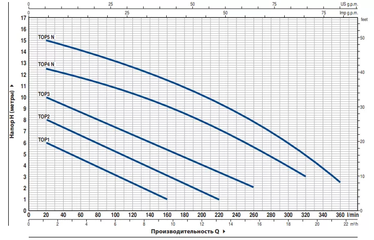 Графические характеристики дренажного насоса PEDROLLO TOP 3
