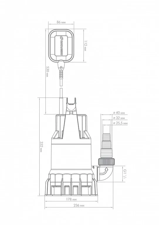 - Для нормальной работы поплавкового выключателя необходимо пространство не менее чем 500х500 мм.