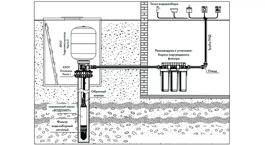 ДЖИЛЕКС КРОТ 24 это универсальное решение для автоматического водоснабжения. Джилекс КРОТ совмещает в себе оголовок для скважины, реле давления (автоматика для включения- отключения скважинного насоса), манометр и гидроаккумулятор на 24 литра. Конструкция данной системы облегчает монтаж оборудования для автоматизации водоснабжения, лишает систему лишних. Благодаря Джиликс КРОТ 24 вы получаете все что нужно для автоматической системы водоснабжения в одном устройстве, при этом монтаж это не конструктор с множеством запчастей а комплект с двумя составляющими. Комплект Джилекс КРОТ 24 состоит из оголовка (с встроенной автоматикой и манометром) и мембранного бака на 24 литра. Все составляющие автоматики КРОТ взаимозаменяемы.