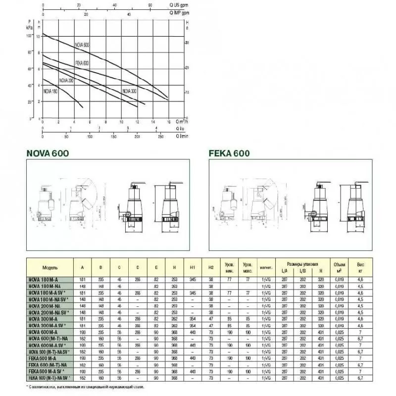 Графические характеристики фекального насоса DAB FEKA 600 M-A - SV