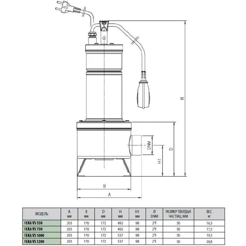 Схема фекального насоса DAB FEKA VS 550 M-NA