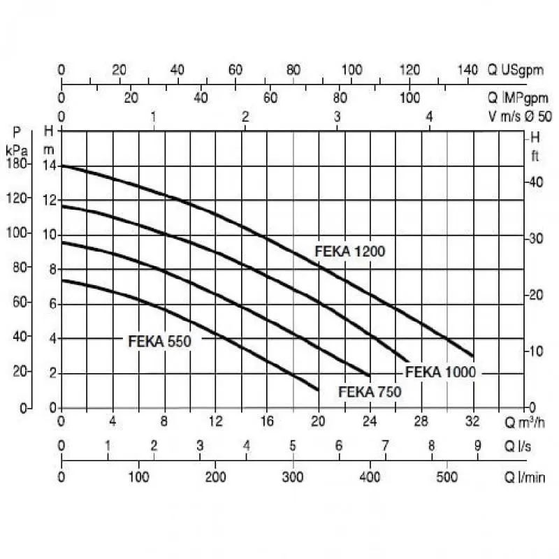 Графические характеристики фекального насоса DAB FEKA VS 750 T-NA