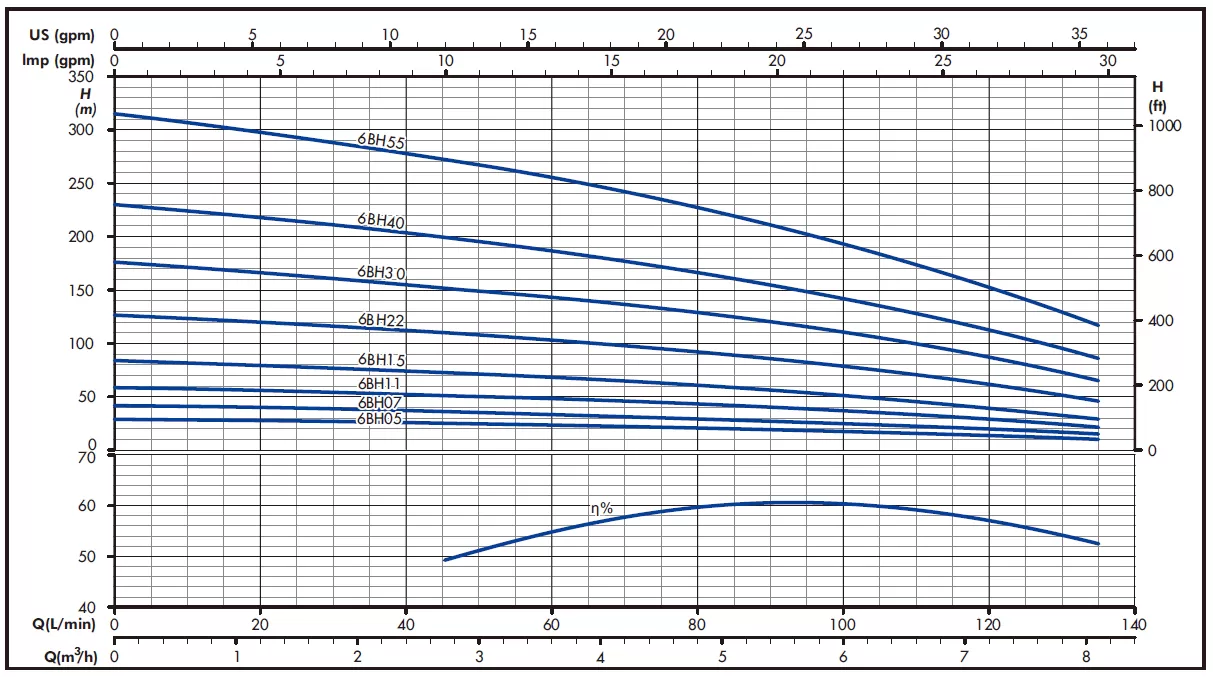 Максимальное количество метров на которое насос может поднять воду.