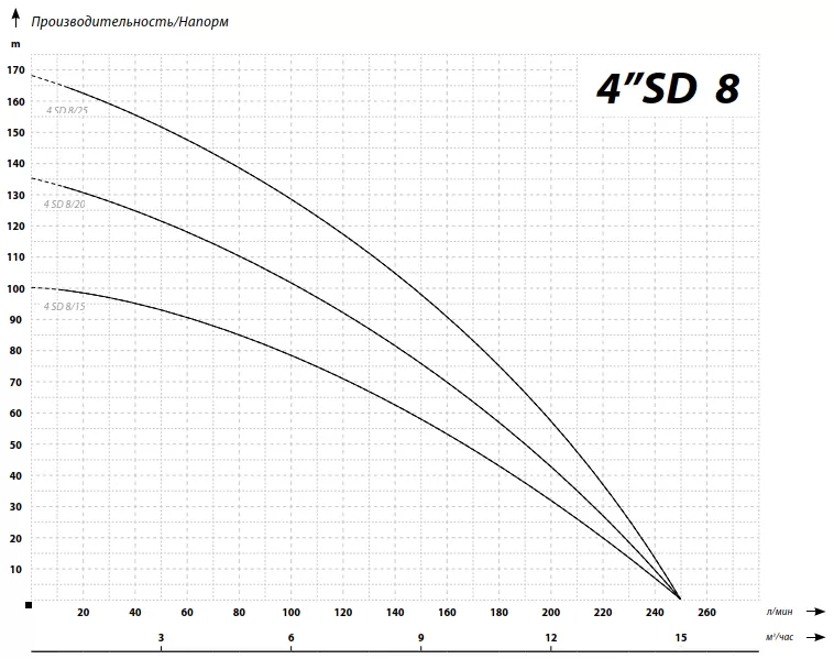 Трехфазный глубинный погружной насос IBO 4SD 8/25 (380В) диаметром 98 мм с повышенной устойчивостью к песку. Насос IBO 4SD 8/25 (380В) доступен к покупке с двигателями IBO и итальянскими двигателями IBO ITALY. В насосе IBO 4SD 8/25 (380В) используется технология «плавающих лопастных колес», а также для основных рабочих элементов насоса применяются износостойкие материалы: латунный нагнетательный патрубок, корпус, вал и сетка фильтра выполнены из нержавеющей стали AISI 304 / а также лопастные колеса выполнены из высококачественной пластмассы, Благодаря этому насос IBO 4SD 8/25 (380В) имеет повышенную стойкость к песку. Насос комплектуется кабелем 1 м, по желанию его можно нарастить до нужного размера. Скважинный насос IBO 4SD 8/25 (380В) имеет отличные характеристики. Напор насоса в максимальной точке составляет 168 м, а производительность достигает максимального показателя в 15 м³/час. Мощность двигателя составляет 5500 Вт, то вполне неплохо для насоса с такими напорно-расходными характеристиками. Насосы серии SD марки ИБО были первыми насосами на рынке, названными «анти–песочными». Они по прежнему являются одними из немногих скважинных насосов на рынке, которые имеют конструкции с такой высокой устойчивостью к песку. Максимальное содержание песка в воде – до 5%. Насос IBO 4SD 8/25 (380В) можно применять как аналог насосов ЭЦВ.