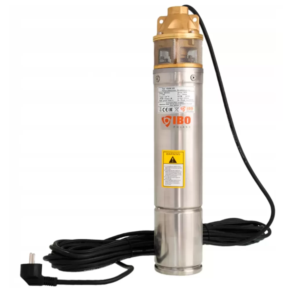 Погружной вихревой скважинный насос IBO 4SKM 200 INOX отличается хорошей конструкцией. Гидравлическая часть насоса встроена непосредственно в вал двигателя. Насос изготовлен из хороших конструкционных материалов, корпус двигателя насоса изготовлен из нержавеющей стали, такие же втулки рабочего колеса и приводной вал, рабочее колесо и корпус напорной части производятся из латуни. Диаметр насоса 98 мм ( 4" ), но он легко помещается в скважину диаметром 125мм. В насосе используется маслозаполненный двигатель. Масло обеспечивает полную смазку подшипников двигателя, что гарантирует долгие годы эксплуатации без обслуживания. Насос может запускаться до 20 раз в час, что является хорошим результатом по сравнению с другими более дешевыми скважинными насосами. Насос оснащен однофазным двигателем мощностью 1500 Вт. Максимальный напор насоса составляет 140 м, производительность насоса в максимальной точке достигает 3 м³/час. IBO 4SKM 200 INOX комплектуется с завода кабелем 15 м.