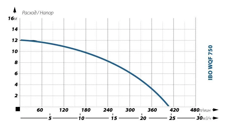Графические характеристики дренажного насоса IBO WQF 750