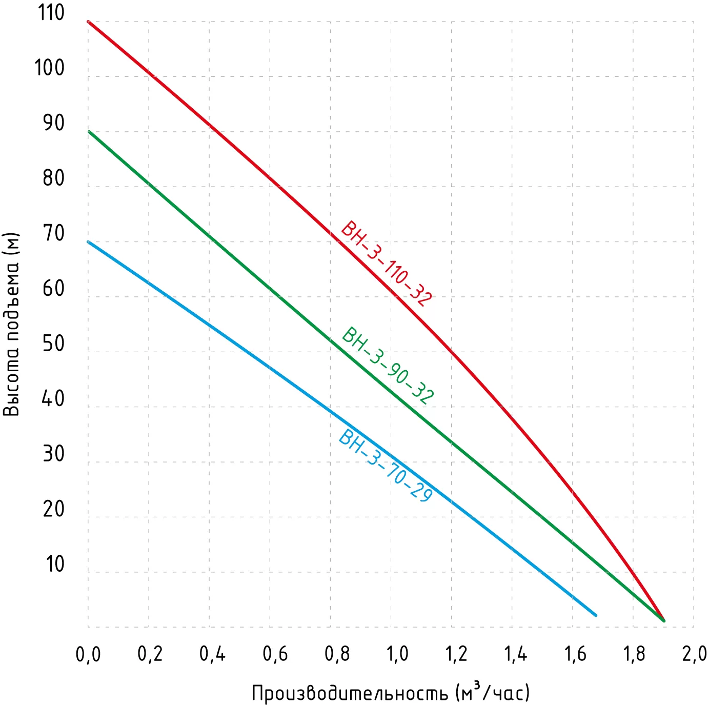 Графические характеристики насоса для скважины Jemix BH-3-110-32