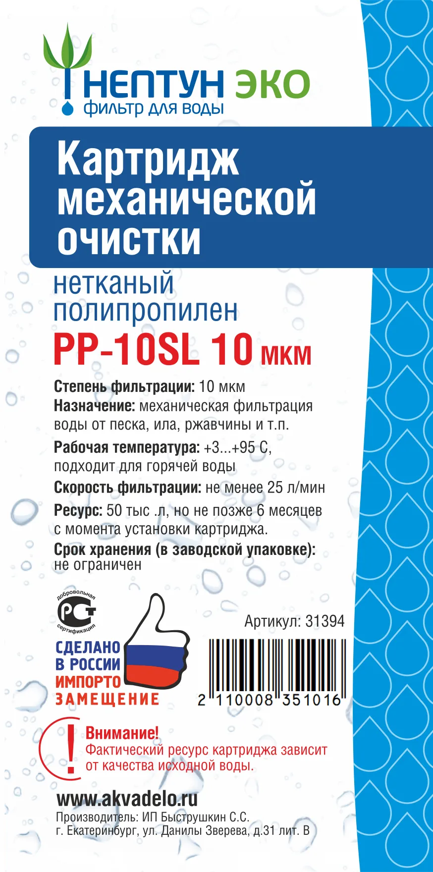 Картридж из нетканого полипропилена Нептун ЭКО PP-10SL 10 мкм