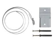 кронштейн, стальная лента со стягивающим механизмом, дюбель - 2 шт, саморез - 2 шт.