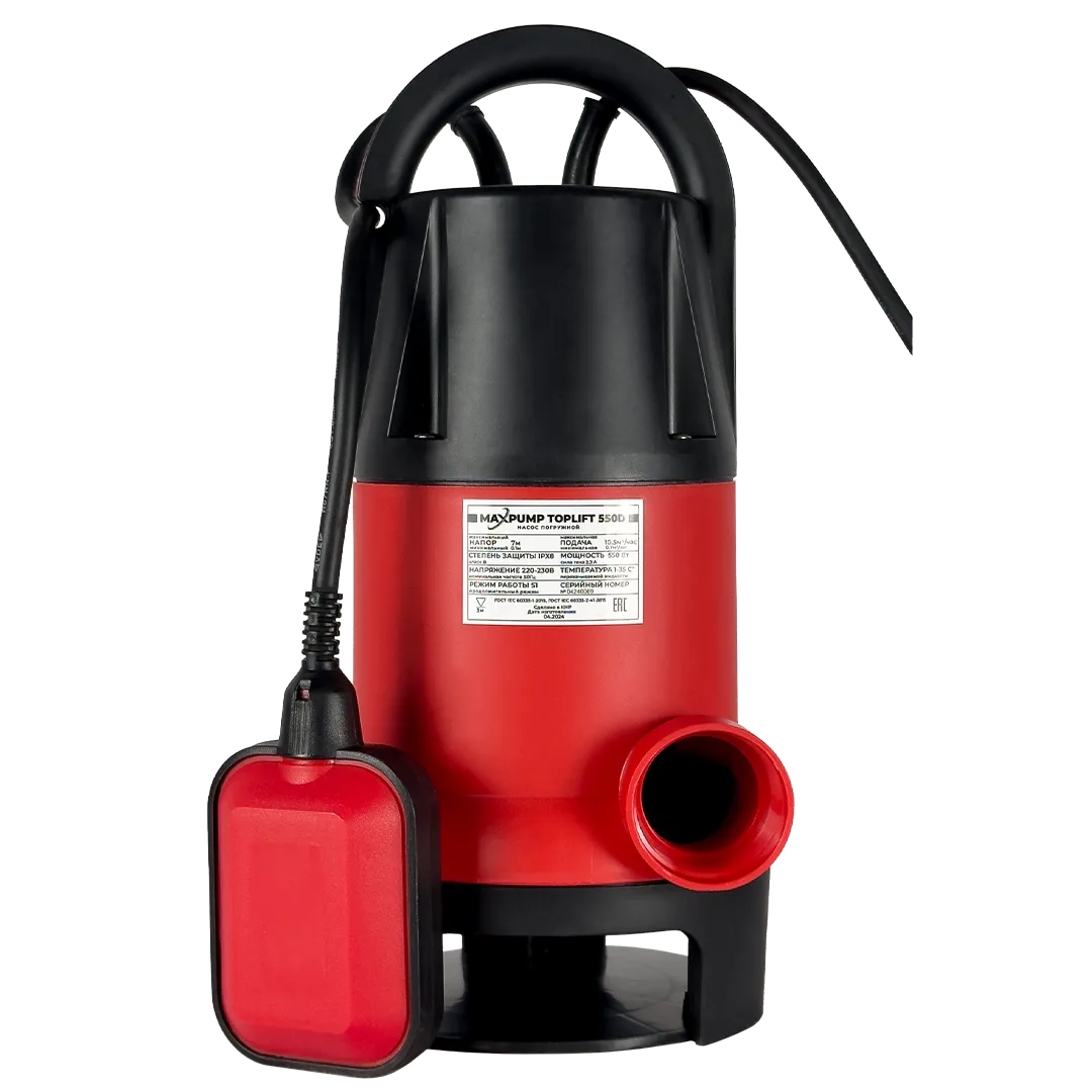 - Одним из главных преимуществ насоса MAXPUMP TOPLIFT 550 D является его высокая мощность — 550 Вт. Это значение позволяет эффективно перекачивать грязную воду, сточные воды и другие жидкости с мелкими частицами. Такой уровень мощности обеспечивает надежную работу даже в сложных условиях, где требуется высокая производительность.