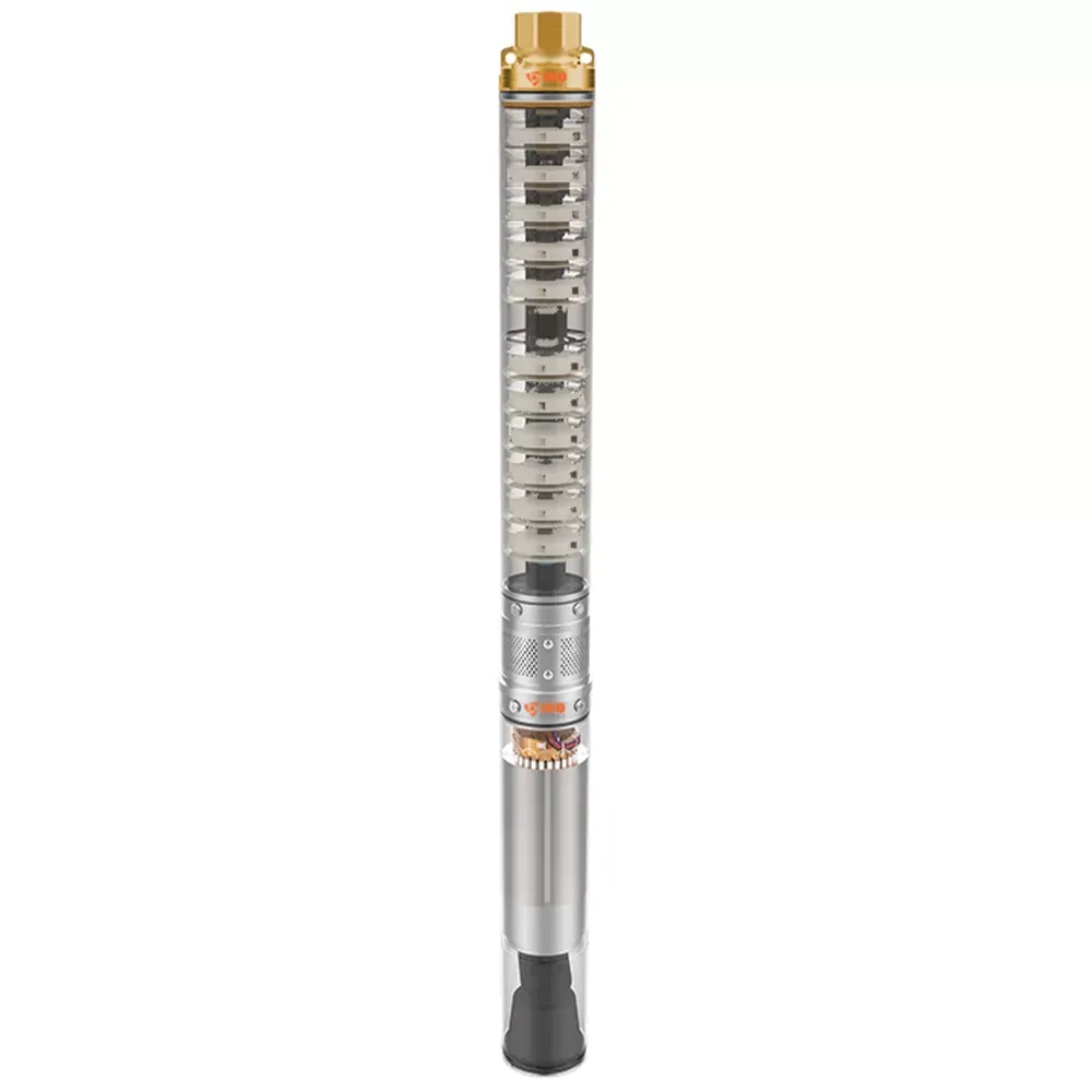 Трехфазный глубинный погружной насос IBO 4SD 4/18 (380В) диаметром 98 мм с повышенной устойчивостью к песку. Насос IBO 4SD 4/18 (380В) доступен к покупке с двигателями IBO и итальянскими двигателями IBO ITALY. В насосе IBO 4SD 4/18 (380В) используется технология «плавающих лопастных колес», а также для основных рабочих элементов насоса применяются износостойкие материалы: латунный нагнетательный патрубок, корпус, вал и сетка фильтра выполнены из нержавеющей стали AISI 304 / а также лопастные колеса выполнены из высококачественной пластмассы, Благодаря этому насос IBO 4SD 4/18 (380В) имеет повышенную стойкость к песку. Насос комплектуется кабелем 1 м, по желанию его можно нарастить до нужного размера. Скважинный насос IBO 4SD 4/18 (380В) имеет отличные характеристики. Напор насоса в максимальной точке составляет 131 м, а производительность достигает максимального показателя в 7.2 м³/час. Мощность двигателя составляет 1500 Вт, то вполне неплохо для насоса с такими напорно-расходными характеристиками. Насосы серии SD марки ИБО были первыми насосами на рынке, названными «анти–песочными». Они по прежнему являются одними из немногих скважинных насосов на рынке, которые имеют конструкции с такой высокой устойчивостью к песку. Максимальное содержание песка в воде – до 5%. Насос IBO 4SD 4/18 (380В) можно применять как аналог насосов ЭЦВ.