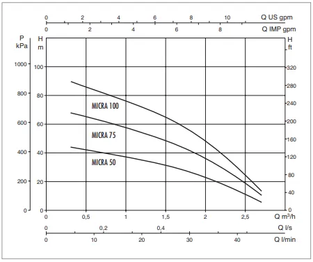 Графические характеристики DAB MICRA 100 M + 15 mt. Cable + Control Box