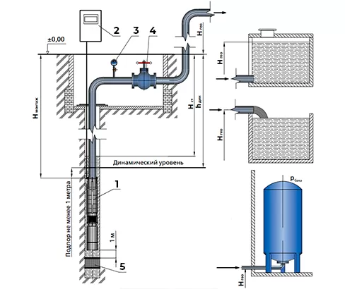 В случае, если требуемая производительность насоса ЭЦВ 12-250-35 нро выше дебета скважины, то необходимо установить датчик сухого хода. Тогда насос ЭЦВ 12-250-35 нро будет работать в периодическом режиме. При этом нужно помнить, что число пусков и интервал между ними должны соответствовать величинам, указанным в руководстве по эксплуатации насоса ЭЦВ 12-250-35 нро.