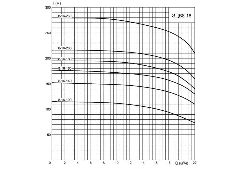 Графические характеристики ЭЦВ 8-16-100н
