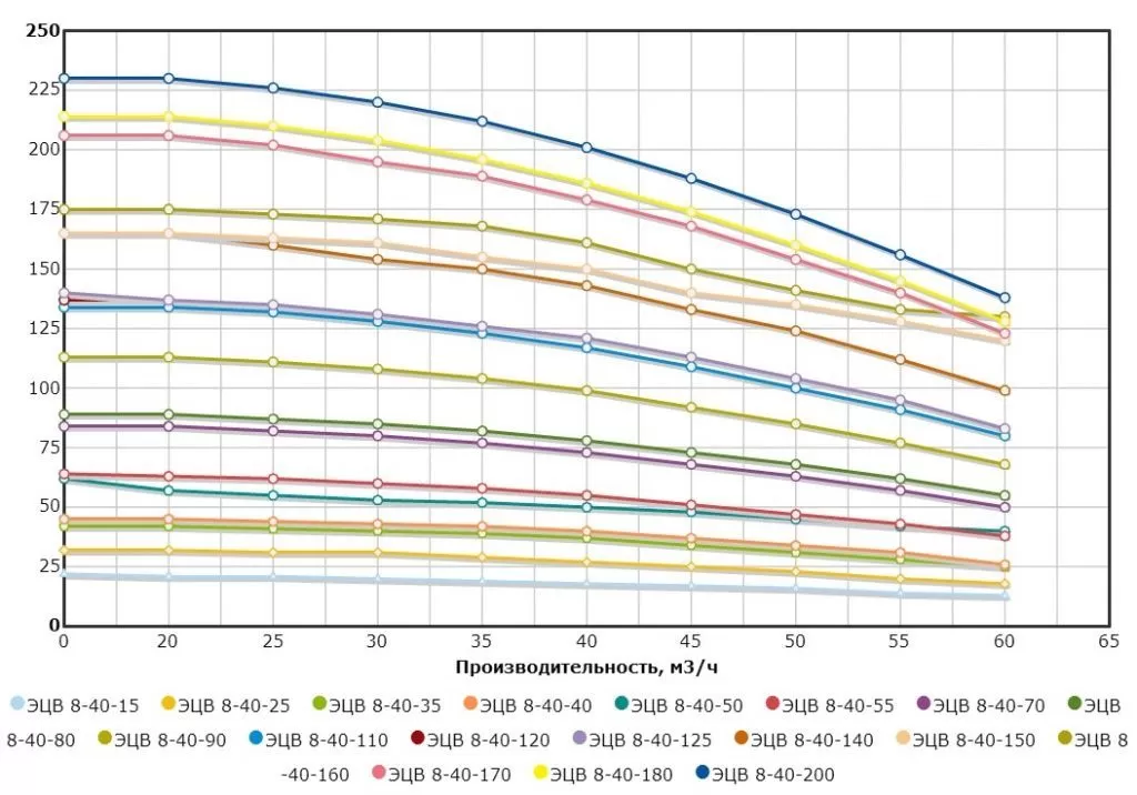 Графические характеристики ЭЦВ 8-40-120н
