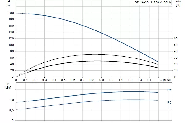 Насос Grundfos SP 1A-36 создан с применением новейших гидравлических технологий. Grundfos SP 1A-36 созданные специально для того, чтобы обеспечивать максимальную эффективность в периоды высокой нагрузки, насос имеет низкую стоимость и высокую надёжность эксплуатации вне зависимости от вида назначения. Grundfos SP 1A-36 обеспечивает высокую эффективность, высокое сопротивление абразивному износу (песку и иным абразивам), защиту от перегрева двигателя и простоту технического обслуживания. Также доступна готовая к применению система контроля и управления, предназначенная для постоянной оптимизации работы насосной системы. Максимальная производительность насоса 1.4 м3/час, максимальный напор 200 м при мощности электродвигателя 1100 Вт. Насос работает от сети 220 в. Гарантийный срок на насос Grundfos SP 1A-36 составляет 2 года.