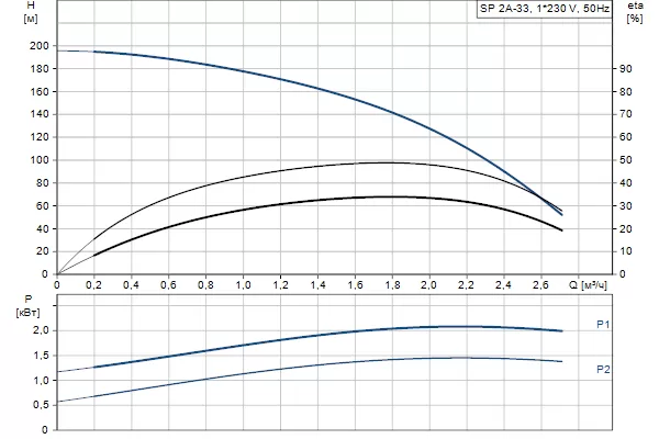Графические характеристики Grundfos SP 2A-33
