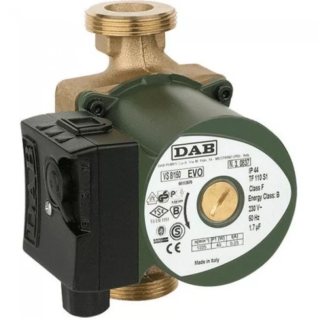 Циркуляционный насос DAB VS 35/150 M используется, главным образом, для циркуляции жидкости в системе горячего водоснабжения (ГВС). Насос имеет бронзовый корпус, поскольку жидкость в системе ГВС является корозионно-активной ввиду высоких температур и большого количества растворенного кислорода. Насос DAB VS имеет одну фиксированную скорость вращения и подбирается (исходя из обеспечения необходимых гидравлических характеристик, а именно преодоления сил гидравлического сопротивления контура) под конкретный контур циркуляции. Подшипники насоса смазываются перекачиваемой жидкостью.