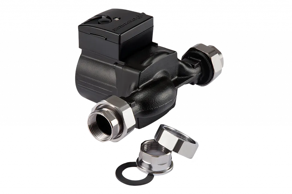 Присоединительный размер гаек — 1 дюйм (25 мм). Максимальный напор достигает 6,2 метров водяного столба, а расход теплоносителя доходит до 70 л/мин.