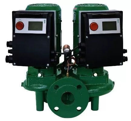 Сдвоенный циркуляционный насос WILO DP-E 80/115-2 с сухим ротором линейного типа для установки в трубах или на фундаменте со встроенным частотным преобразователем для электронного регулирования параметров, в том числе постоянного или переменного перепада давления (Δp-c/Δp-v). Трехфазный электродвигатель с частотным преобразователем